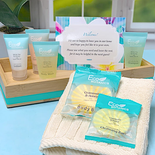 Eco Botanics Weißer Tee & Honig Bade-Geschenkset – Nachfüllbare 300 ml Pumpflaschen